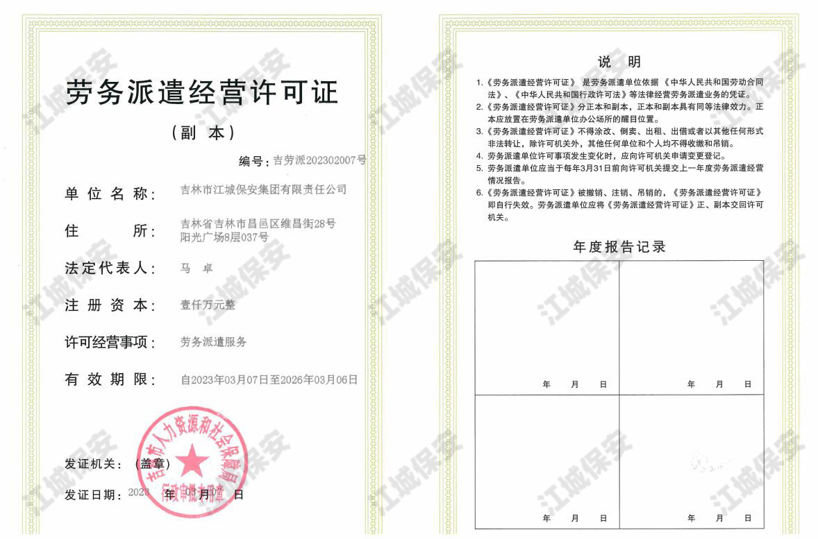 • 勞務(wù)派遣經(jīng)營(yíng)許可證(正本)